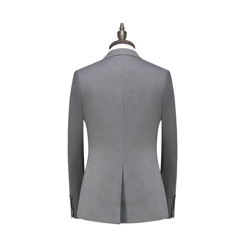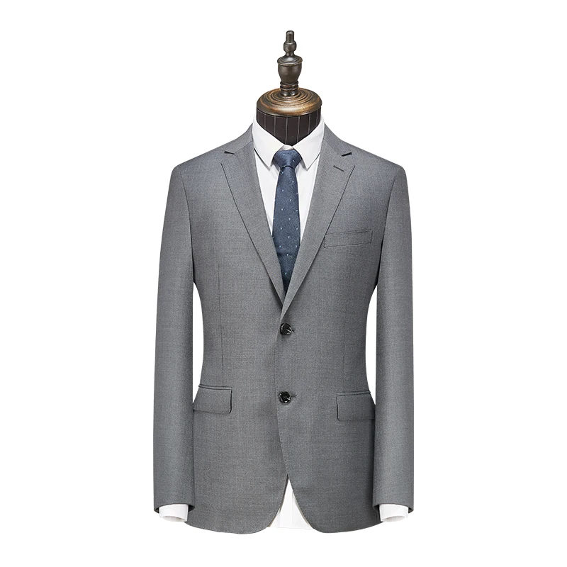 Men's Gray Breathable and Wrinkle Resistant Business Suit with Mandarin Collar Two-Piece Formal Wear for Adults