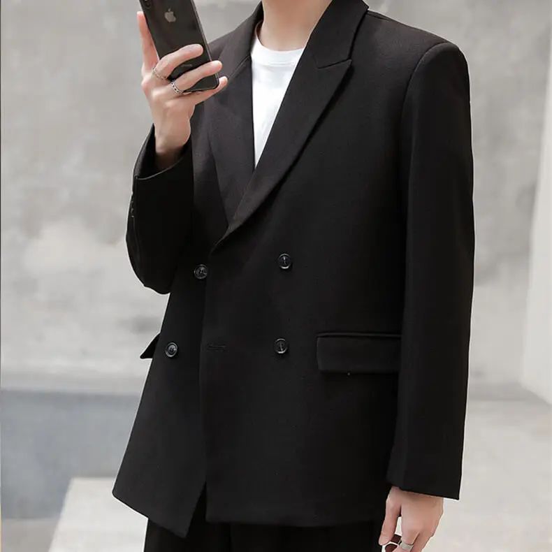 Drop Shipping Double Breasted Pleated Office Coat Pant Man's Western Suit Apricot TR New Design Breathable Plus Size Worsted