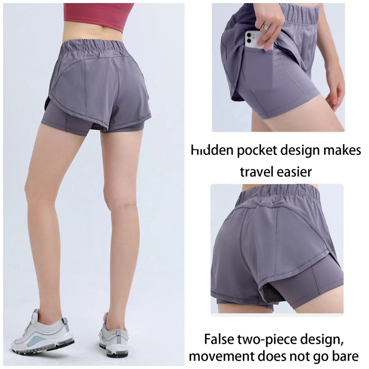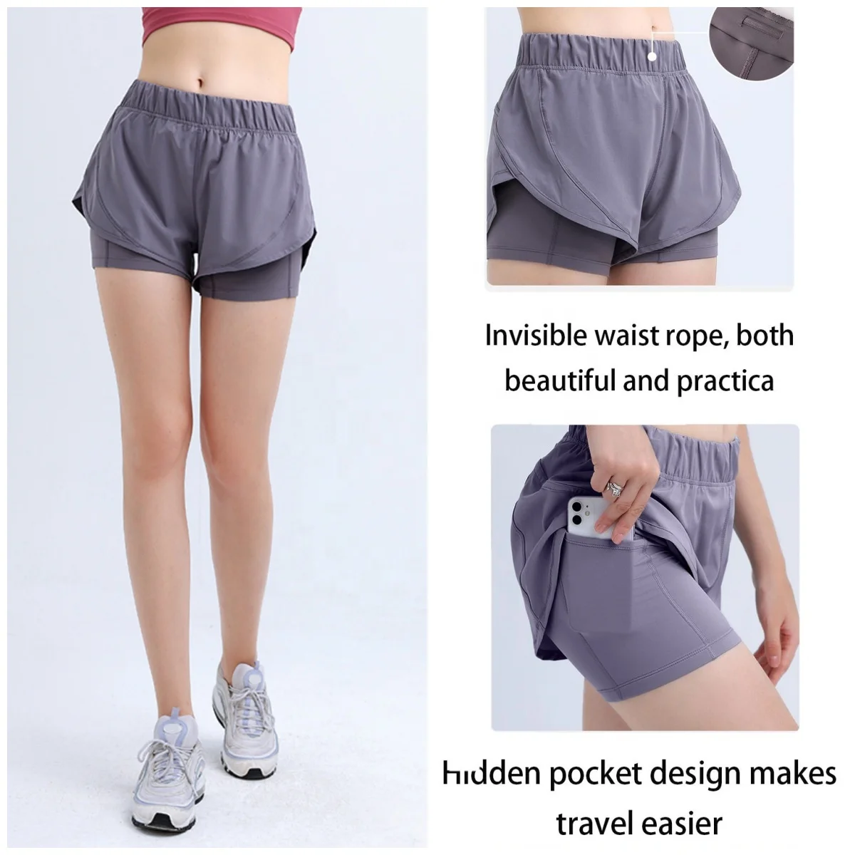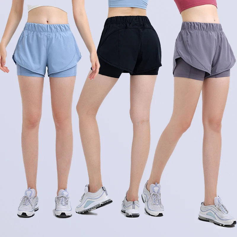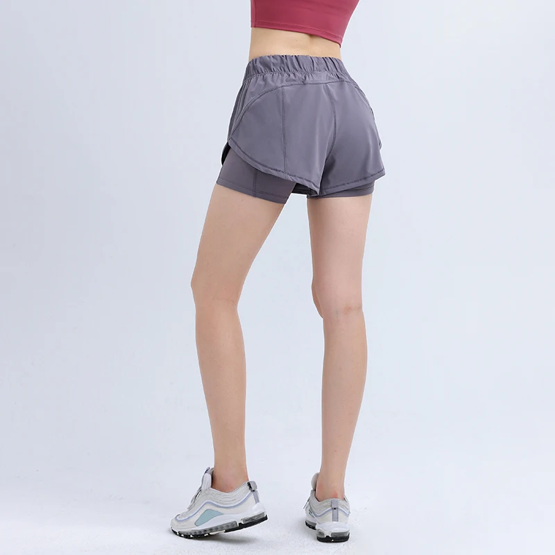 2 in 1 Shorts Women Fitness Active Wear Ladies Workout Lightweight Shorts with Compression Hidden Pockets Women's Sports Shorts