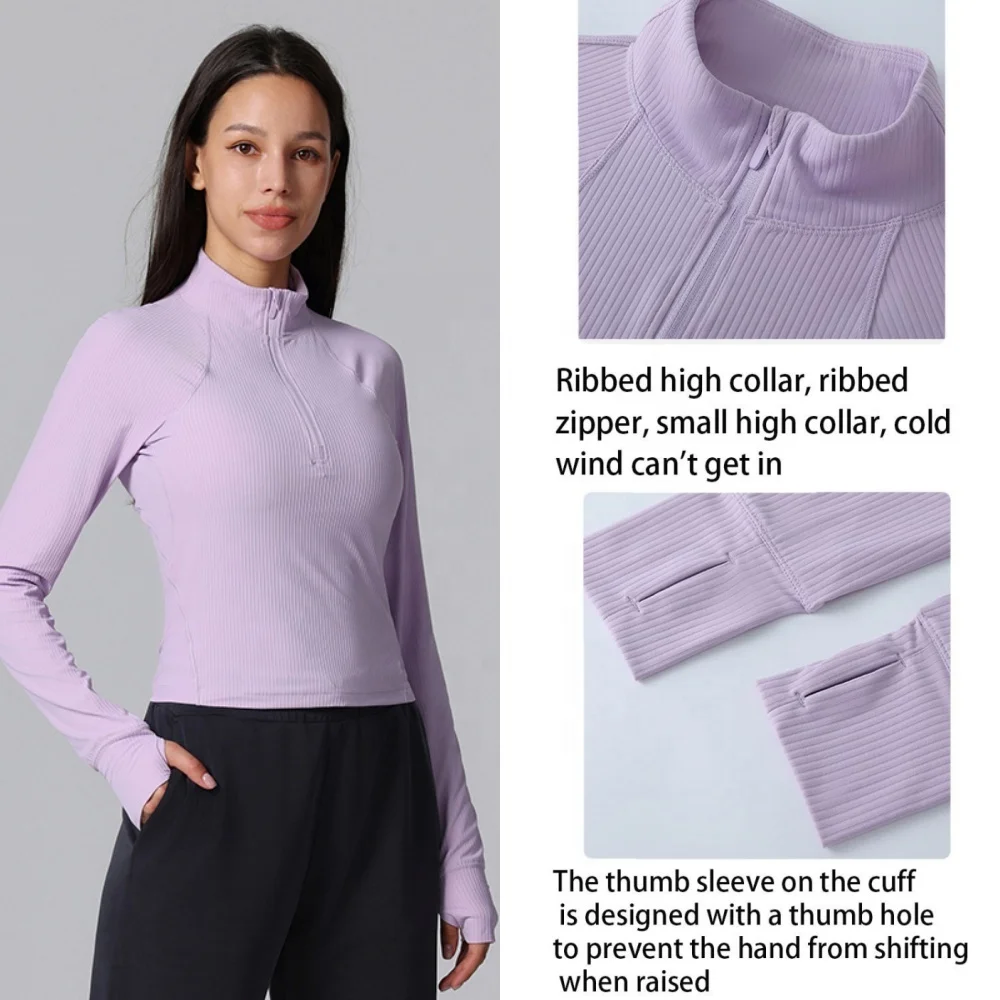Women's Custom Half-Zip Active Tops Long Sleeves Fitted Running Fitness Ladies T-Shirt Breathable Slimming Gym Yoga Sports Top