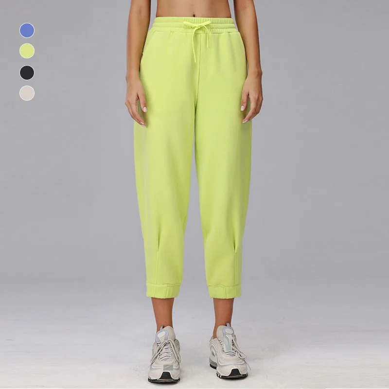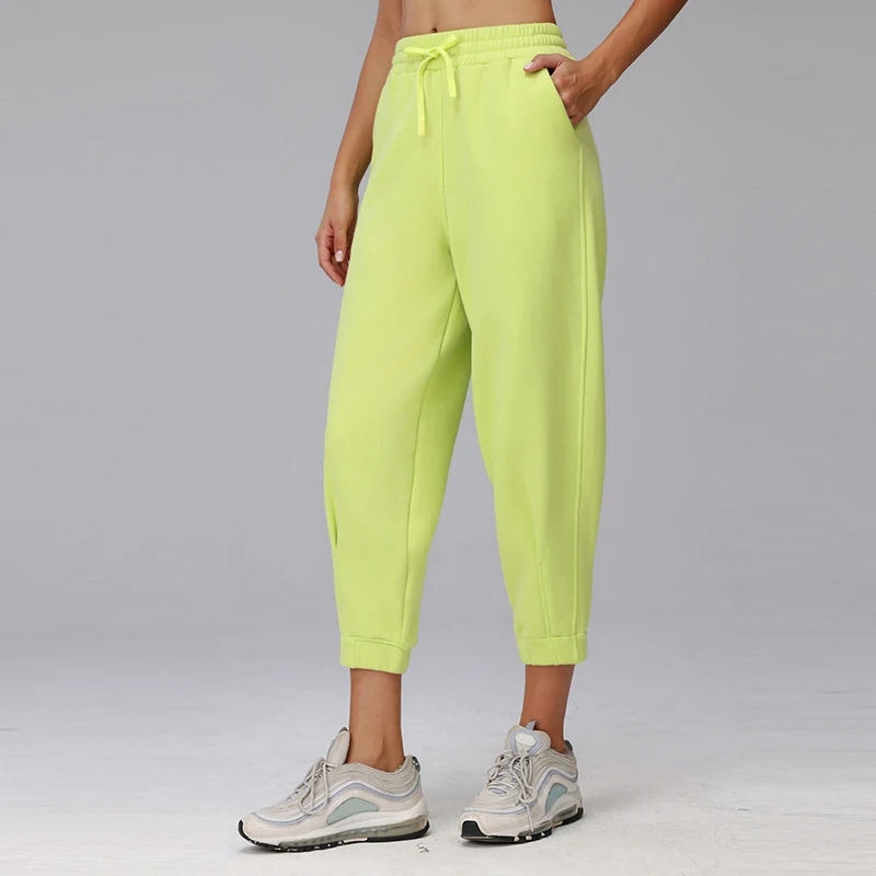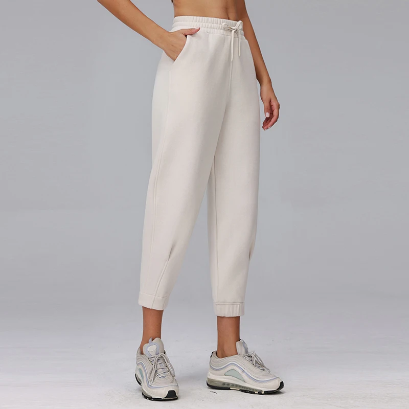 High Waist Joggers Tracksuit Pants Solid Fleece Winter Sweatpants Elastic Pockets Fall Straight Leg Casual Running Sweat Pants