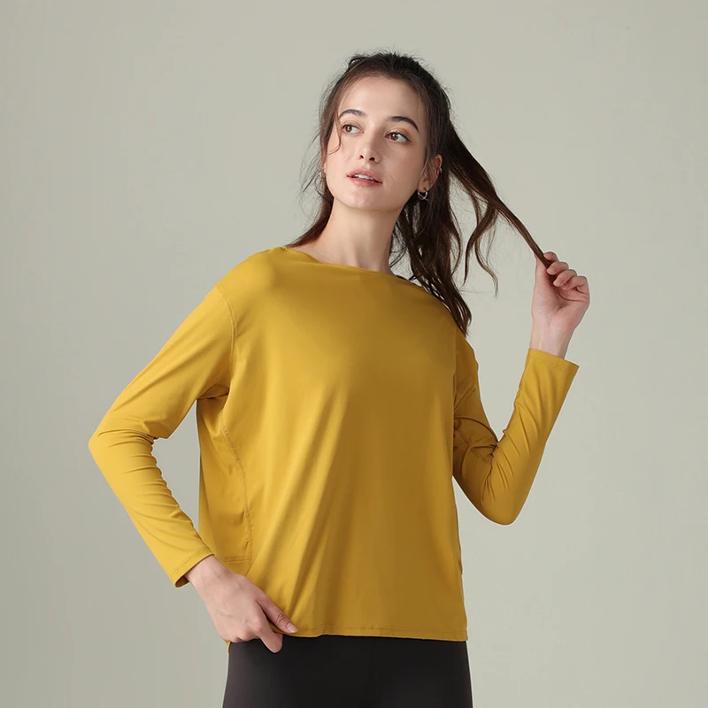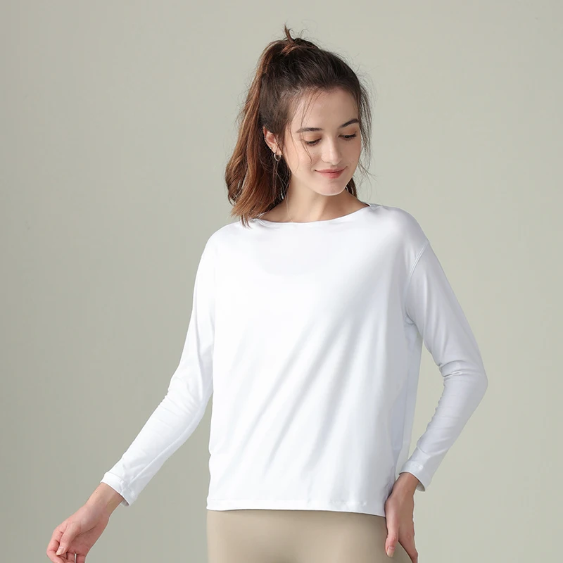 Factory Wholesale Custom Logo Fitness Wear Long-sleeved Women's Simple Sports Tops Workout Gym Running T-shirts Tight Yoga Wear
