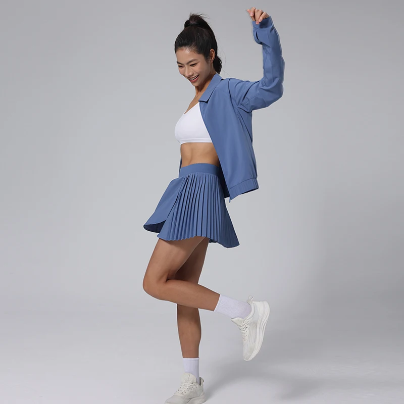 YISHENHON Women's Outdoor Running Tennis Skirt Anti-slip A-Line Skirt with Stand Collar and One Piece Dress Cloud Sense Design