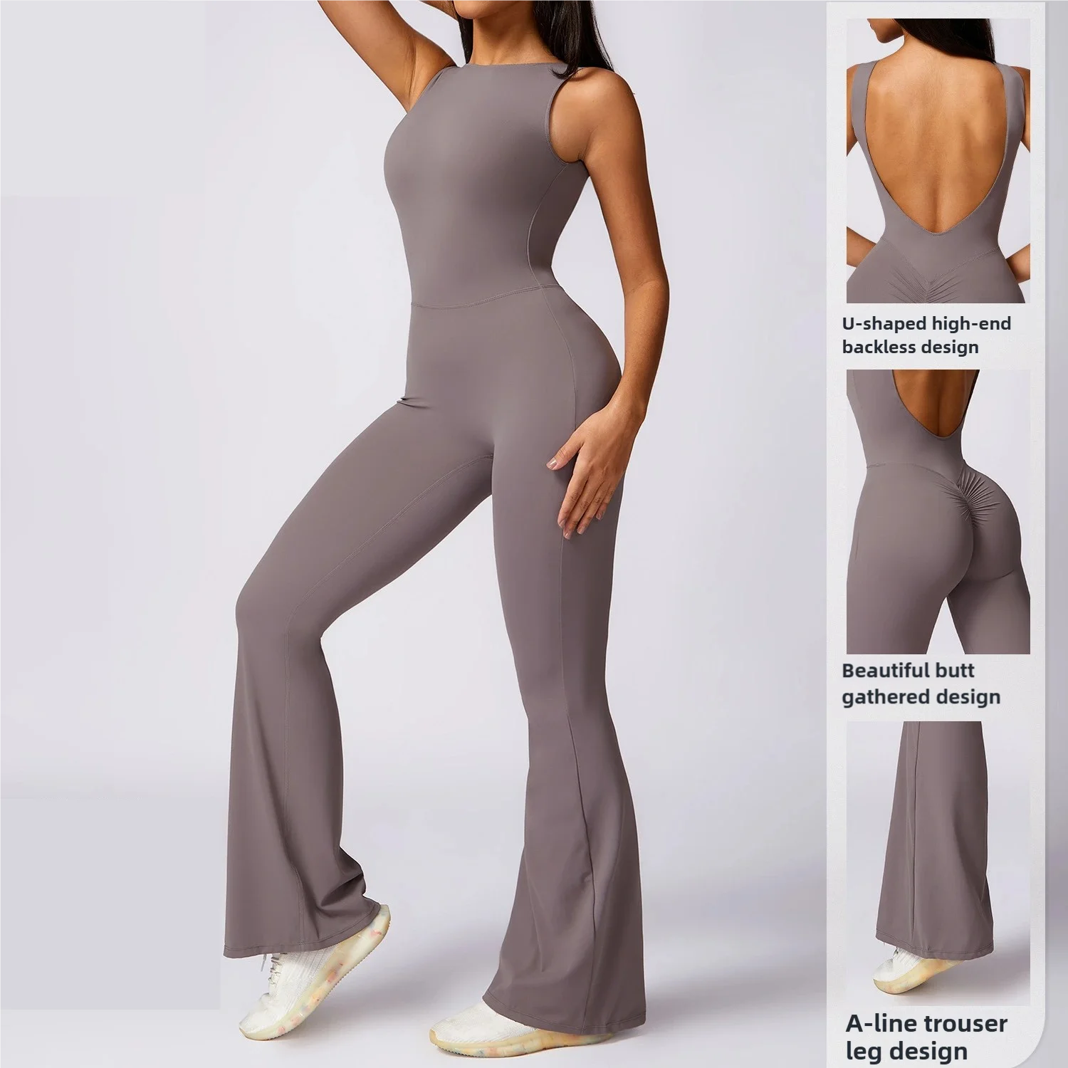 New Beautiful Sleeveless Micro Flared Sports Jumpsuit Hollow Back Hip Lifting Leisure Fitness Yoga Suit