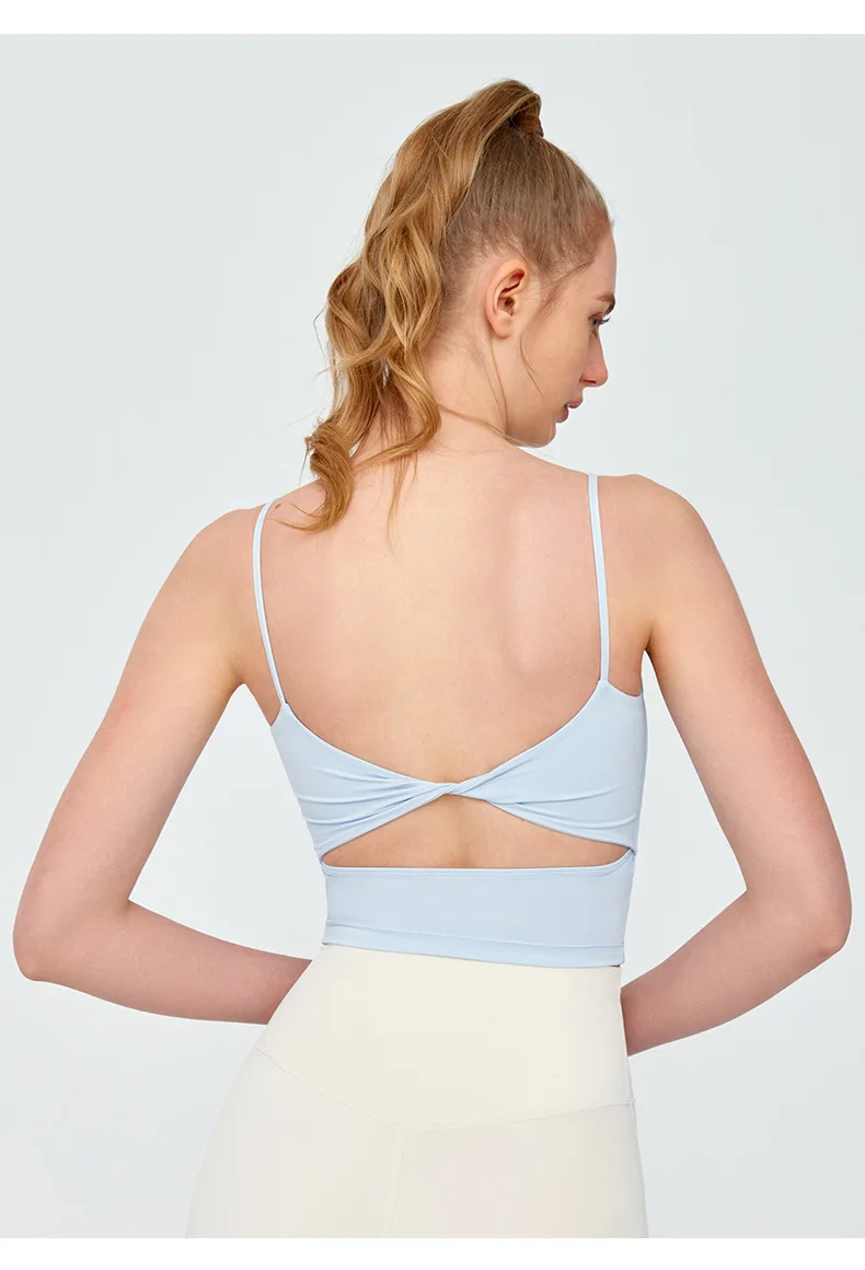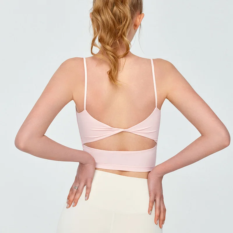 Sexy Elastic Breathable Hollow Sports Bra for Beauty Back Yoga Featuring Twisted Crossover Design with Chest Pad