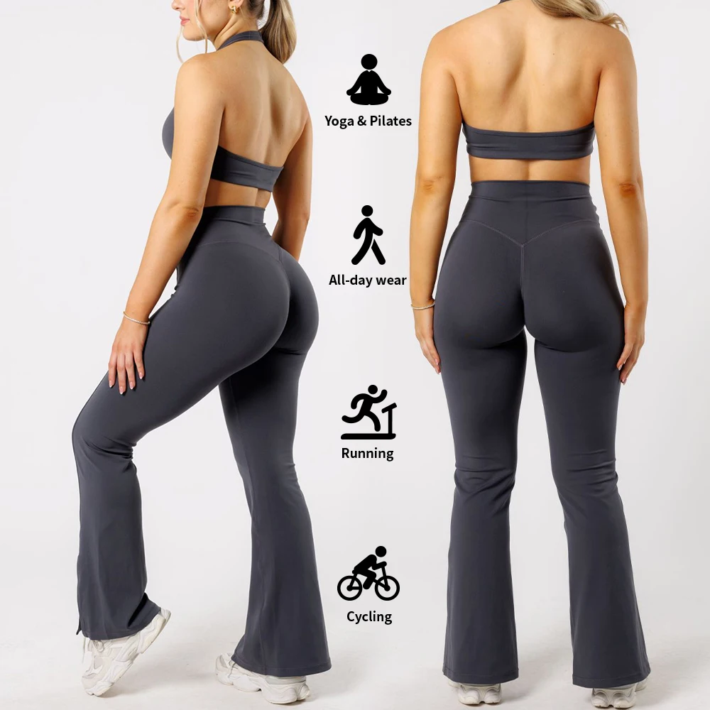 YISHENHON High Quality Gym Yoga Flare Leggings Hot Selling High-Waisted Wide Leg Pants for Women Solid Casual Sport Running