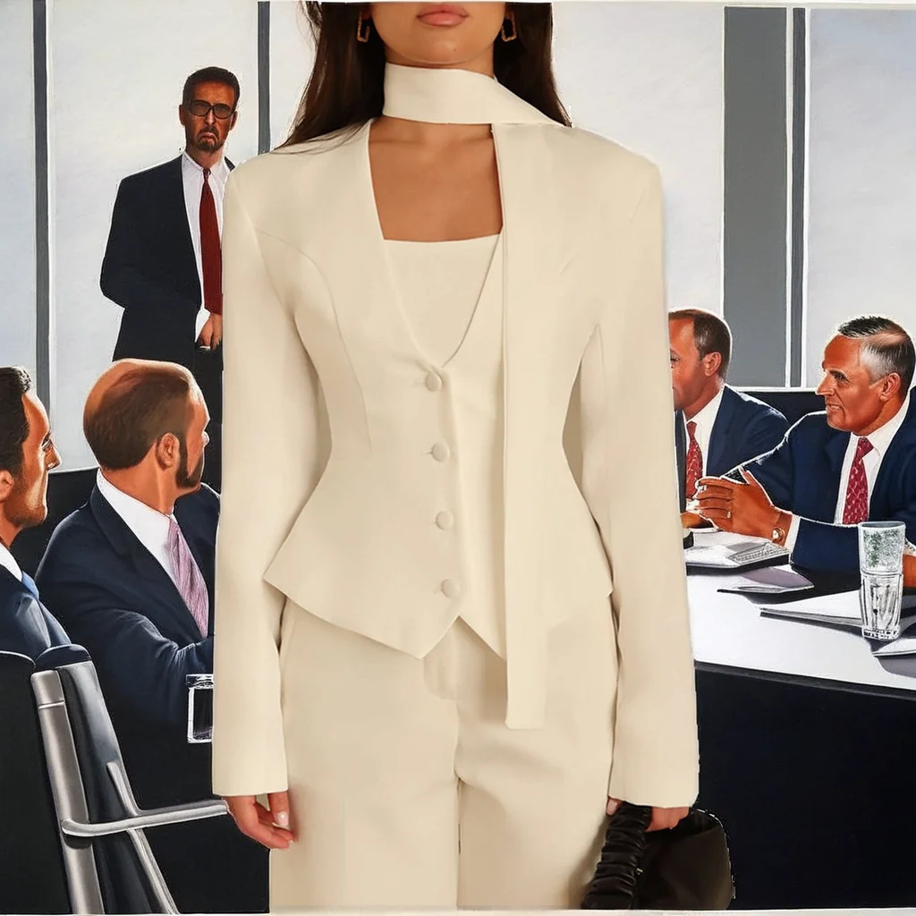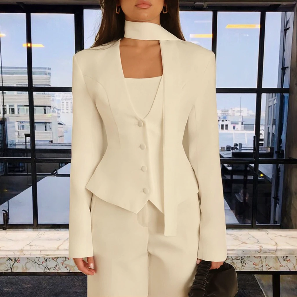 Women's 2026 Fashionable Solid-Color V-Neck Blazer Top Long Sleeves and Loose-Fitting Casual with Short Length New Style Scarf
